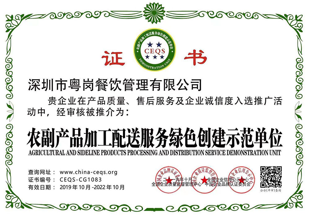 深圳市粵崗餐飲管理有限公司,是一家集蔬菜種植和農(nóng)副產(chǎn)品配送為一體的專業(yè)型餐飲公司,主要為學(xué)校、工廠企事業(yè)機(jī)關(guān)單位提供蔬菜和農(nóng)副產(chǎn)品配送服務(wù)。公司自成立以來始終以質(zhì)優(yōu)價(jià)廉、服務(wù)至上為原則,嚴(yán)格按照ISO:9001國際標(biāo)準(zhǔn)體系進(jìn)行管理。同時(shí)建立了行業(yè)領(lǐng)先的配送中心、大型冷庫和保鮮庫、檢測中心以及專業(yè)化的配送團(tuán)隊(duì),能長期安全、穩(wěn)定、準(zhǔn)時(shí)的配送貨物。我們所有蔬菜均經(jīng)過初步加工、無黃葉,無泥沙等雜質(zhì),利用率達(dá)97%以上...保障向用戶提供的各類食材的衛(wèi)生和質(zhì)量。公司為了適應(yīng)不同客戶的需求,配有專業(yè)人員和配送車輛,實(shí)行“一對(duì)一”的服務(wù)體制,一心一意的為客戶服務(wù),秉承粵崗誠實(shí)守信、服務(wù)第一、客戶至上的服務(wù)標(biāo)準(zhǔn),真正讓客戶花最少的錢吃最好的菜。粵崗多年來何以欣欣向榮,因?yàn)槲覀冎乐挥杏掠趽?dān)當(dāng)責(zé)任,才能承擔(dān)更大的責(zé)任,就是因?yàn)?粵崗員工貫徹公司態(tài)度決定一切、細(xì)節(jié)決定成敗的真理,從質(zhì)量抓起,從服務(wù)做起,才創(chuàng)造了如今的規(guī)模化供應(yīng)、統(tǒng)一性配送、專業(yè)化服務(wù)的粵崗。